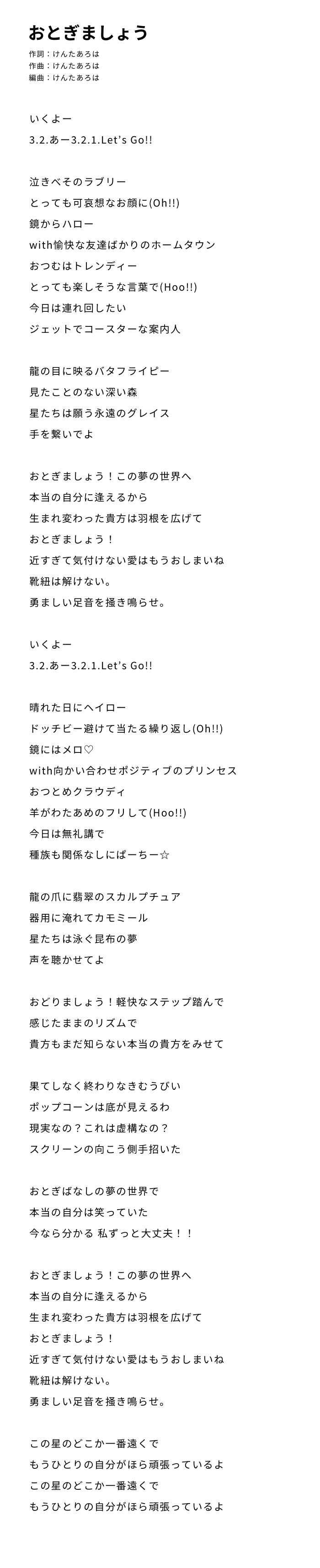 作詞:けんたあろは / 作曲:けんたあろは / 編曲:けんたあろは